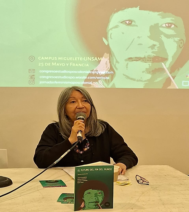Terceiro Malón da Paz, no Auditório Lectura Mundi, UNSAM, 7 de dezembro de 2023. Ao lado da poeta mapuche Liliana Ancalao e das professoras Susana de Castro (UFRJ), Karina Bidaseca (UNSAM e UBA), Hariagi Brba Nunes (UFRGDS) e Maria Clara Cavalcanti (UFRJ). Contamos com a participação das Mulheres Indígenas do Terceiro Malón da Paz, Jujuy, Argentina. Apresentaram o reclamo pelo direito aos seus territórios ancestrais. Em sintonia com o II Colóquio Lélia Gonzalez Psicanálise e Amefricanidade, Rede de Pesquisa e Formação Lélia Gonzalez. Bases para uma Psicanálise Contracolonial, Brasil, realizado de 1 a 6 de dezembro em Brasília, São Paulo, Recife e Buenos Aires: As Formações do Inconsciente Racializado: Lélia Gonzalez e o Horizonte Político da Amefricanidade.